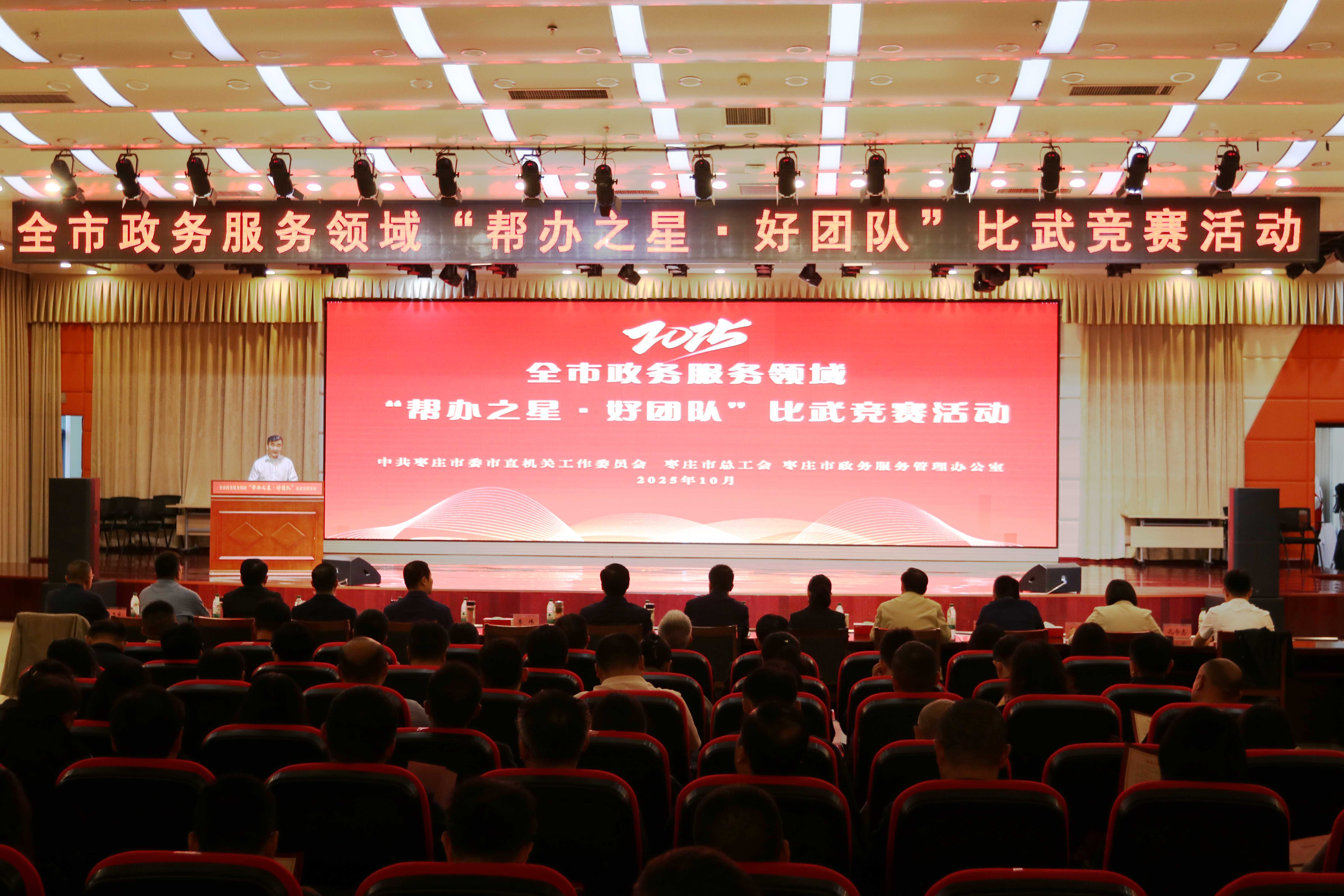 10月17日,由市委市直机关工委、市总工会、市政务服务管理办公室联合举办的全市政务服务领域“帮办之星·好团队”比武竞赛活动,在枣庄银行报告厅顺利举办。市政府副秘书长李明智,市委市直机关工委、市总工会等相关部门分管负责同志出席活动。来自全市政务服务领域的12支参赛队伍同台竞技、展开角逐。活动邀请50名人大代表、政协委员、企业和群众代表,以及政务服务体验员担任比赛评委。