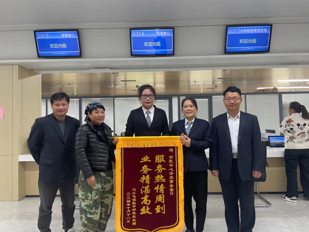 台儿庄区行政审批服务局秉承“为民服务,务实重干”的工作作风,全面整合农机审批资源,主动开展农机集中上门审验和农户特事预约上门服务,解决了联合收割机进城区行驶速度慢且耗时的问题。为此马兰屯镇陇子村赵先生委托家人向我局涉农事务窗口赠送锦旗,以表谢意。