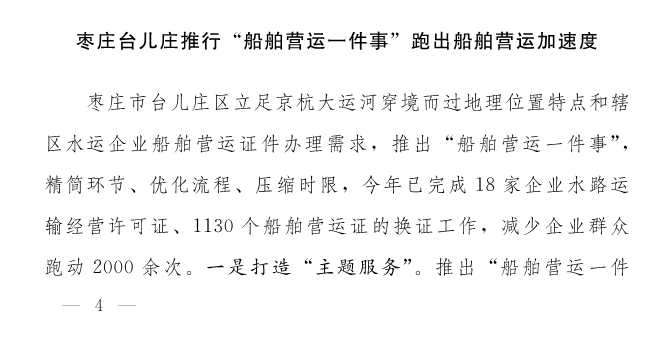 台儿庄区|“船舶营运一件事”经验做法被省营转办发文推广